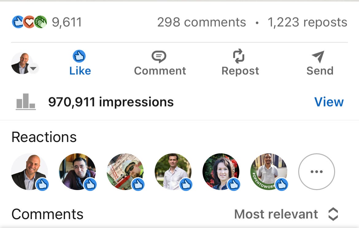 One week later we hit half a million impressions with 200+ comments and 5,000+ reactions.